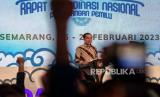 Presiden Joko Widodo memberikan sambutan dalam pembukaan Rapat Koordinasi Nasional (Rakornas) Partai Amanat Nasional (PAN) di Semarang, Jawa Tengah, Ahad (26/2/2023). Rakornas PAN 2023 yang digelar 26-27 Februari itu dihadiri sekitar 2.400 peserta beragendakan sejumlah lokakarya (workshop) politik serta konsolidasi persiapan partai dalam menghadapi Pemilu 2024 serta rencana dukungan kepada sejumlah kandidat bakal Capres dan Cawapres yang diusung PAN pada Pilpres 2024. (FOTO : ANTARA FOTO/Aji Styawan)