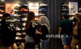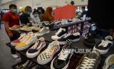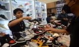 Pengunjung memilih sepatu di salah satu stan pada event Jakarta Sneaker Day (JSD) di ICE BSD, Tangerang, Banten, Ahad (26/2/2023). (FOTO : Republika/Prayogi.)