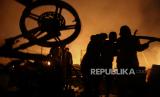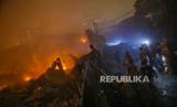 REPUBLIKA.CO.ID, TANAH ABANG -- Petugas pemadam kebakaran berusaha memadamkan api yang membakar pemukiman di Tanah Abang, Jakarta, Ahad (26/2/2023).