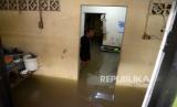 Warga berada dirumahnya saat banjir merendam kawasan Kebon Pala, Kampung Melayu, Jatinegara, Jakarta Timur, Senin (27/2/2023). (FOTO : Republika/Prayogi.)