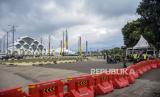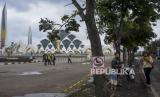 Warga beraktivitas di dekat Masjid Raya Al Jabbar yang ditutup sementara di Gedebage, Kota Bandung, Provinsi Jawa Barat, Senin (27/2/2023). Pemerintah Daerah Provinsi Jawa Barat menutup sementara Masjid Raya Al Jabbar hingga 13 Maret mendatang dalam rangka penataan dan pemeliharaan jelang bulan suci Ramadhan. (FOTO : ABDAN SYAKURA/REPUBLIKA)