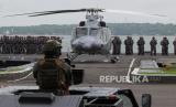Panglima Komando Armada Republik Indonesia (Pangkoarmada RI) Laksamana Madya TNI Heru Kusmanto (kedua kanan) menginspeksi pasukan saat upacara Serah Terima Jabatan Panglima Komando Armada II di Koarmada II, Surabaya, Jawa Timur, Senin (27/2/2023). (FOTO : ANTARA FOTO/Didik Suhartono)