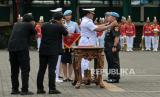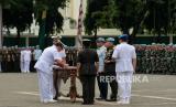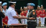 REPUBLIKA.CO.ID,JAKARTA -- Panglima TNI Laksamana Yodo Margono menyerahkan Pataka Pasukan Pengamanan Presiden (Paspampres) Setia Waspada kepada Komandan Pasukan Pengamanan Presiden (Danpaspampres) Mayjen TNI Rafael Granada Baay saat upacara serah terima jabatan Komandan Paspampres di Mako Paspampres, Jakarta, Senin (27/2/2023).