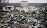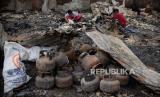 Warga mencari puing-puing sisa kebakaran di kawasan Tanah Abang, Jakarta, Senin (27/2/2023). Sebanyak 87 rumah tinggal dan 250 bangunan semi permanen hangus terbakar pada Ahad (26/3/2023), yang hingga kini penyebabnya masih dalam penyelidikan dan kerugian ditaksir mencapai Rp 1 Miliar. (FOTO : Republika/Putra M. Akbar)
