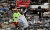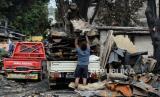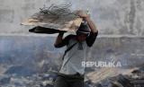Warga mengangkut puing-puing sisa kebakaran di kawasan Tanah Abang, Jakarta, Senin (27/2/2023). Sebanyak 87 rumah tinggal dan 250 bangunan semi permanen hangus terbakar pada Ahad (26/3/2023), yang hingga kini penyebabnya masih dalam penyelidikan dan kerugian ditaksir mencapai Rp 1 Miliar. (FOTO : Republika/Putra M. Akbar)