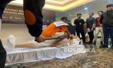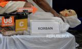 Polda Metro Jaya menggelar rekonstruksi kasus pembunuhan disertai mutilasi tersangka M Ecky Listantho (34 tahun) dengan korban Angela Hindriati Wahyuningsih (54 tahun), di Gedung Ditreskrimum Polda Metro Jaya, Jakarta Selatan, Rabu (1/3). (FOTO : Republika/Ali Mansur)