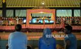 REPUBLIKA.CO.ID,YOGYAKARTA -- Dalang mementaskan kesenian Wayang Golek Menak Yogyakarta di Bangsal Srimanganti, Keraton Yogyakarta, Rabu (1/3/2023).
