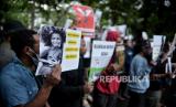REPUBLIKA.CO.ID,JAKARTA -- Massa dari Front Mahasiswa Anti Kekerasan Papua melakukan aksi di depan kantor Komnas HAM, Jakarta, Jumat (3/3/2023).