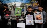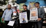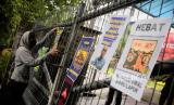 Sejumlah massa aksi menempelkan poster pada pagar saat unjuk rasa di depan Kantor Direktorat Jenderal Pajak, Jakarta, Jumat (3/3/2023). Pada unjuk rasa bertajuk Koin Peduli Untuk Ditjen Pajak tersebut mereka menuntut pencopotan Dirjen Pajak Suryo Utomo, audit seluruh harta kekayaan pejabat tinggi di lingkungan Ditjen Pajak dan segera lakukan reformasi pajak untuk mencegah rasa pesimis masyarakat taat pajak. (FOTO : Republika/Putra M. Akbar)