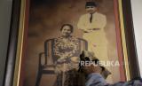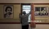 Petugas membersihkan foto Presiden Soekarno dengan Inggit Garnasih di Rumah Bersejarah Inggit Garnasih, Jalan Ibu Inggit Garnasih, Astanaanyar, Kota Bandung, Sabtu (4/3/2023). Rumah Bersejarah Inggit Garnasih yang merupakan bangunan heritage tempat tinggal Presiden Soekarno dan Inggit Garnasih sejak 1926 sampai dengan pertengahan 1934 tersebut menjadi salah satu destinasi wisata sejarah di Kota Bandung. (FOTO : ABDAN SYAKURA/REPUBLIKA)
