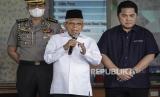 REPUBLIKA.CO.ID, JAKARTA -- Wakil Presiden Maruf Amin didampingi Menteri BUMN Erick Thohir menyapa warga terdampak kebakaran Depo Pertamina Plumpang di Ruang Publik Terpadu Ramah Anak (RPTRA) Rasela, Koja, Jakarta Utara, Sabtu (4/3/2023).