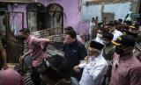 Wapres Maruf Amin (tengah kanan) didampingi Menteri BUMN Erick Thohir (tengah tengah kiri) meninjau permukiman penduduk yang hangus terbakar dampak kebakaran Depo Pertamina Plumpang di kawasan Jalan Koramil, Rawa Badak Selatan, Koja, Jakarta, Sabtu (4/3/2023). Belasan warga dilaporkan menjadi korban jiwa dalam peristiwa itu. (FOTO : ANTARA FOTO/Aprillio Akbar)