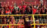 REPUBLIKA.CO.ID,MAKASSAR -- Pesepak bola PSM Makassar Rasyid Bakri (kedua kiri) berebut bola dengan pesepak bola Persis Solo Sutanto Tan (kedua kanan) dan Gianluca (kiri) pada laga BRI Liga 1 di Stadion Gelora BJ Habibie, Pare-Pare, Sulawesi Selatan, Ahad (5/3/2023). PSM Makassar menang melawan Persis Solo dengan skor 3-2.