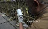 REPUBLIKA.CO.ID,BANDUNG -- Petugas Dinas Ketahanan Pangan dan Pertanian (DKPP) Kota Bandung menyuntikkan vaksin kombinasi ND+AI Inaktif ke seekor ayam di Kantor DKPP Kota Bandung, Jalan Arjuna, Cicendo, Kota Bandung, Jawa Barat, Senin (6/3/2023).