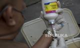 Petugas Dinas Ketahanan Pangan dan Pertanian (DKPP) Kota Bandung menyiapkan vaksin kombinasi ND+AI Inaktif untuk disuntikkan ke seekor ayam di Kantor DKPP Kota Bandung, Jalan Arjuna, Cicendo, Kota Bandung, Jawa Barat, Senin (6/3/2023). DKPP Kota Bandung memberikan vitamin dan melakukan vaksinasi terhadap unggas milik kelompok peternak sebagai upaya pencegahan dan kewaspadaan munculnya kasus flu burung di Kota Bandung. (FOTO : ABDAN SYAKURA/REPUBLIKA)