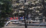 REPUBLIKA.CO.ID, PLUMPANG -- Petugas berada di lokasi kebakaran Depo Pertamina Plumpang, Jakarta Utara, Jakarta, Senin (6/3/2023).