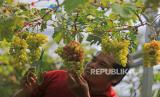REPUBLIKA.CO.ID,Pembudi daya anggur Juli Santoso merawat tanaman anggurnya di Desa Tegalurung, Indramayu, Jawa Barat, Selasa (7/3/2023).