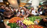 Wakil Menteri Perdagangan Jerry Sambuaga (ketiga kiri) mencoba pembayaran digital disaksikan oleh Direktur Utama Bank BTN Haru Koesmahargyo (kedua kanan), Direktur IT & Digital Bank BTN Andi Nirwoto (paling kanan) dan Anggota Komisi XI DPR RI Puteri Anetta Komarudin (ketiga kanan) saat melakukan kunjungan kerja ke Pasar Tagog, Padalarang, Kabupaten Bandung Barat, Selasa (7/3/2023). (FOTO : Dok. Republika)