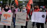 REPUBLIKA.CO.ID,JAKARTA -- Sejumlah massa aksi melakukan unjuk rasa di kawasan Patung Kuda Arjuna Wiwaha, Jakarta, Rabu (8/3/2023).