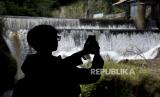 Warga mengambil gambar suasana Sungai Cikapundung di Cipaganti, Kecamatan Coblong, Kota Bandung, Jawa Barat, Rabu (8/3/2023). (FOTO : ABDAN SYAKURA/REPUBLIKA)