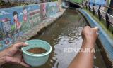 Warga memberi pakan ikan di selokan yang bermuara di Sungai Cikapundung, Cihampelas, Kota Bandung, Jawa Barat, Rabu (8/3/2023). (FOTO : ABDAN SYAKURA/REPUBLIKA)