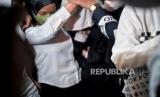 Petugas Kepolisian membawa kekasih tersangka penganiayaan terhadap David Ozora,  Mario Dandy, berinisial AG menaiki mobil usai diperiksa di Unit Pelayanan Perempuan dan Anak Ditreskrimum Polda Metro Jaya, Jakarta, Rabu (8/3/2023).   (FOTO : Republika/Thoudy Badai)