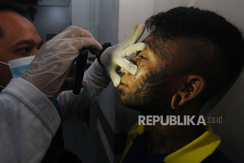 REPUBLIKA.CO.ID, BOYOLALI -- Badan Narkotika Nasional Kota (BNNK) Surakarta melakukan pemeriksaan pupil mata warga binaan pemasyarakatan saat melakukan razia narkoba di Rumah Tahanan (Rutan) Kelas IIB Boyolali, Jawa Tengah, Rabu (8/3/2023).