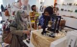 Pengunjung mengamati bermacam produk Usaha Mikro Kecil Menengah (UMKM) di Galeri Patrakomala Dekranasda (Dewan Kerajinan Nasional Daerah) Kota Bandung, Jumat (10/3/2023). (FOTO : Edi Yusuf/Republika)