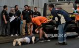 Tersangka penganiayaan Cristalino David Ozora, Mario Dandy Satriyo saat melakukan rekonstruksi kasus penganiayaan di Perumahan Green Permata Residences, Pesanggrahan, Jakarta, Jumat (10/3/2023). (FOTO : Republika/Thoudy Badai)