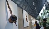 Pengunjung melihat alat-alat musik yang dipamerkan saat Pameran Cocok Nada, Perancangan Alat Musik di Selasar Pavilion, Jalan Bukit Pakar Timur, Ciburial, Kabupaten Bandung, Jumat (10/3/2023). (FOTO : Edi Yusuf/Republika)