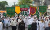 Sejumlah peziarah mengikuti tradisi ziarah makam ulama jelang Ramadhan atau Ziarah Kubro menuju Pemakaman Gubah Duku, 8 Ilir Palembang, Sumsel, Jumat (10/3/2023). (FOTO : ANTARA FOTO/Feny Selly)