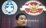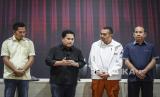 REPUBLIKA.CO.ID, JAKARTA -- Ketua Umum PSSI Erick Thohir menyampaikan keterangan pers di GBK Arena, Jakarta, Jumat (10/3/2023).