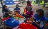 Relawan Taruna Siaga Bencana (Tagana) menyiapkan bahan makanan di dapur umum posko pengungsian di SMAN 1 Serasan, Kecamatan Serasan, Kabupaten Natuna, Kepulauan Riau, Jumat (10/3/2023). (FOTO : ANTARA FOTO/Teguh Prihatna )