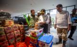 Menko PMK Muhadjir Effendy (tengah) bersama Kepala Badan Nasional Penanggulangan Bencana (BNPB) Letjen TNI Suharyanto (kiri) dan Bupati Natuna Wan Siswandi (kanan) mengecek bantuan di posko penampungan logistik bantuan korban tanah longsor Kecamatan Serasan, Kabupaten Natuna, Kepulauan Riau, Jumat (10/3/2023). (FOTO : ANTARA FOTO/Teguh Prihatna)