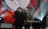Vokalis grup band Dewa, Ello (kiri) bersama gitaris Andra Ramadhan tampil dalam Jakarta Concert Week di JCC Senayan, Jakarta, Jumat (10/3/2023). Menampilkan Ello sebagai vokalis, Dewa membawakan sejumlah lagu hitsnya seperti Cukup Siti Nurbaya, Kuldesak dan Kangen. Jakarta Concert Week merupakan rangkaian kegiatan dari pameran otomotif Gaikindo Jakarta Auto Week yang menampilkan sejumlah grup band dan musisi ternama. (FOTO : Republika/Edwin Dwi Putranto)