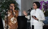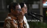 REPUBLIKA.CO.ID, JAKARTA -- Menteri Keuangan (Menkeu) Sri Mulyani (kanan) dan Menteri Koordinator Bidang Politik Hukum dan Keamanan (Menko Polhukam) Mahfud MD (kiri) menyampaikan keterangan kepada wartawan terkait dugaan transaksi gelap karyawan Kemenkeu di Kantor Kemenkeu, Jakarta, Sabtu (11/3/2023).