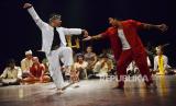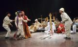Pertunjukan seni Longser yang dibawakan oleh komunitas budaya Bandoengmooi di Gedung Dewi Asri Institut Seni Budaya Indonesia (ISBI), Kota Bandung, Jumat (10/3/2023). (FOTO : Edi Yusuf/Republika)