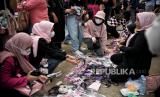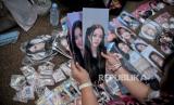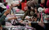 Calon penonton membeli sejumlah atribut bernuansa Black Pink di area Stadion Utama Gelora Bung Karno (SUGBK) Jakarta, Sabtu (11/3/2023). (FOTO : Republika/Thoudy Badai)