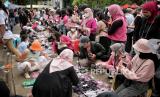Pedagang menjajakan dagangannya saat jelang konser Black Pink di area Stadion Utama Gelora Bung Karno (SUGBK) Jakarta, Sabtu (11/3/2023). (FOTO : Republika/Thoudy Badai)