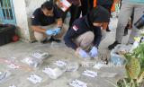 Petugas menunjukan barang bukti yang didapat dari hasil olah TKP di rumah terdampak ledakan di Sukosari, Kasembon, Malang, Jawa Timur, Minggu (12/3/2023). Dari hasil olah TKP, polisi menemukan serbuk yang diduga merupakan bahan baku untuk membuat petasan. ANTARA FOTO/Muhammad Mada/Zk/nz (FOTO : ANTARA FOTO)