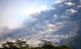 REPUBLIKA.CO.ID, SLEMAN -- Luncuran awan panas guguran (APG) Gunung Merapi terlihat dari Tunggularum, Sleman, Yogyakarta, Senin (13/3/2023).