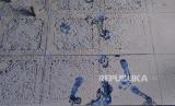 Ketebalan abu vulkanis di teras rumah warga imbas erupsi Gunung Merapi di Desa Tlogolele, Selo, Boyolali, Jawa Tengah, Senin (13/3/2023). Salah satu desa terdekat dengan Gunung Merapi di arah Barat Daya mengalami hujan abu vulkanis cukup tebal. Hingga hari ke-tiga pasca erupsi besar pada Sabtu (11/3/2023) lalu, abu vulkanis tebal masih menutupi rumah warga dan perkebunan. Jarak Desa Tlogolele dari puncak Gunung Merapi sekitar lima kilometer, dan termasuk dalam kategori kawasan rawan bencana. (FOTO : Republika/Wihdan Hidayat)