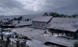 REPUBLIKA.CO.ID,BOYOLALI -- Rumah warga tertutup abu vulkanis imbas erupsi Gunung Merapi di Desa Tlogolele, Selo, Boyolali, Jawa Tengah, Senin (13/3/2023).