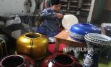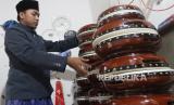 REPUBLIKA.CO.ID,MALANG -- Perajin menata alat musik rebana buatannya di rumah produksi Al Mabrur Percussion, Tajinan, Malang, Jawa Timur, Senin (13/3/2023).