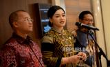 Kepala Eksekutif Pengawas Perilaku Pelaku Usaha Jasa Keuangan, Edukasi, dan Pelindungan Konsumen OJK Friderica Widyasari Dewi memberikan keterngan pers dalam Sosialisasi Pengawasan Perilaku Pelaku Usaha Jasa Keuangan dan Pelindungan Konsumen dan Masyarakat di Jakarta, Selasa (14/3/2023). (FOTO : Republika/Prayogi.)