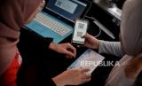 Calon pemudik melakukan registrasi pendaftaran mudik gratis di GOR Bulungan, Jakarta, Selasa (14/3/2023). (FOTO : Republika/Thoudy Badai)