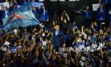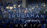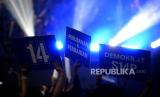 Sejumlah kader hadir saat acara pidato politik Ketua Umum Partai Demokrat Agus Harimurti Yudhoyono (AHY) di Tennis Indoor Senayan, Jakarta, Selasa (14/2/2023). (FOTO : Republika/Prayogi.)