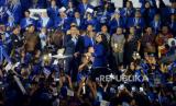 REPUBLIKA.CO.ID, SENAYAN -- Ketua Umum Partai Demokrat Agus Harimurti Yudhoyono (AHY) menyampaikan pidato Politik di Tennis Indoor Senayan, Jakarta, Selasa (14/2/2023).