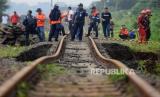 REPUBLIKA.CO.ID, BOGOR -- Kondisi jalur rel kereta api Bogor-Sukabumi yang longsor di kawasan Empang, Kota Bogor, Jawa Barat, Rabu (15/3/2023).