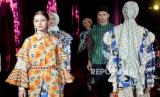 REPUBLIKA.CO.ID,JAKARTA -- Model mengenakan busana karya kolaborasi desainer Barli Asmara dengan brand Aleza saat gelaran Aleza Raya Fashion Show di Jakarta, Kamis (16/3/2023).